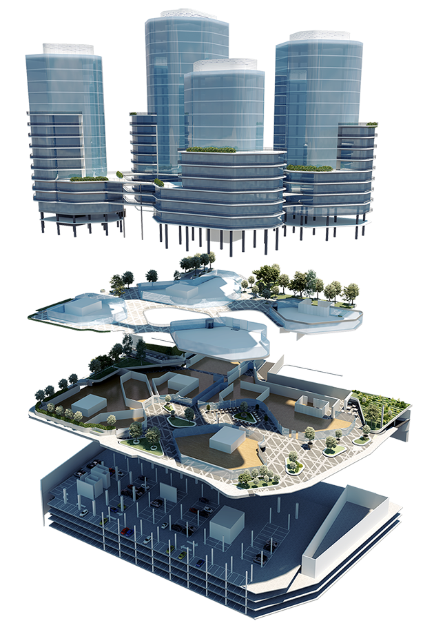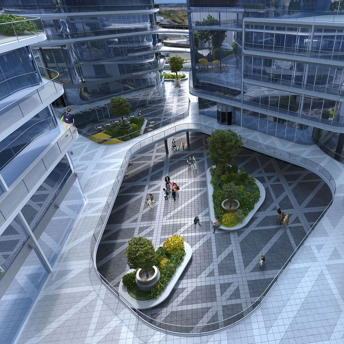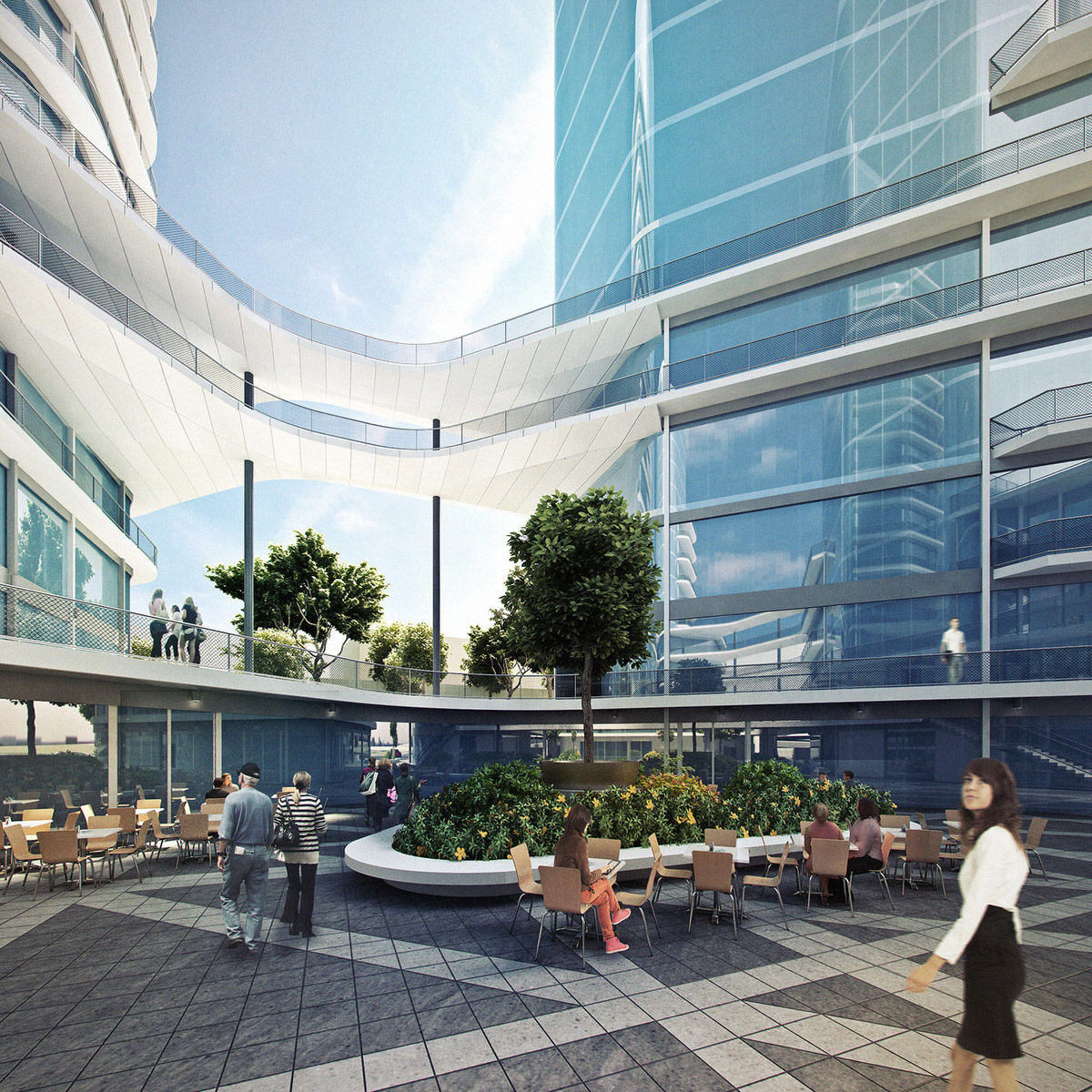- 4 separate Towers, interlinked through bridges and walkways at designated levels.